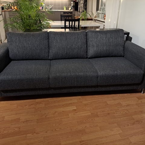 Myydään tukeva ja mukava sohva, joka on ehjä ja tahraton. Istuintyynyt ovat kiinteät ja pitäneet muotonsa. Hyvä istua ja kiva löhötä! Säännöllisesti puhdistettu.