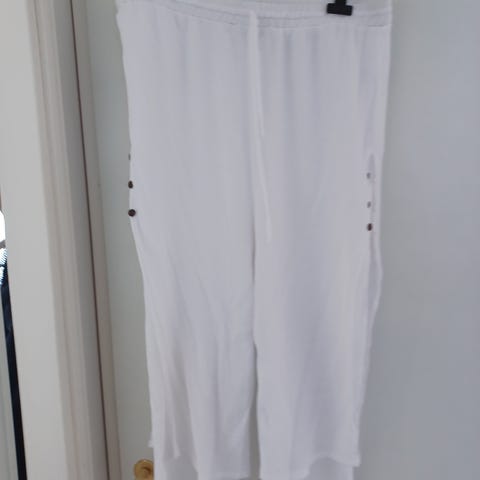KappAhl housut naisille. Koko XL. Väri musta. Materiaali polyesteriä. Housuissa on väljä ja laskeutuva malli, jossa on leveät lahkeet ja ohuen, hieman läpikuultavan oloinen kangas.