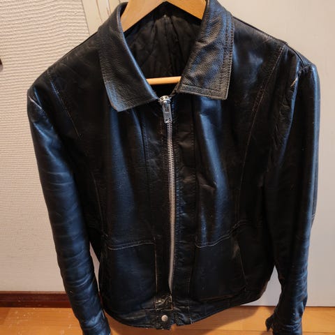 Mynnissä kuvien mukainen0 puolipitkä nahkatakki. Koko 52. Pari nappia puuttuu, kuten yhdestä kuvasta näkyy. Nouto tai lähetys.