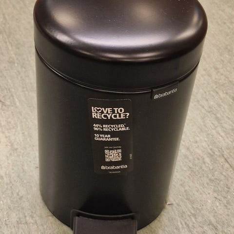 Brabantia NewIcon pieni poljinroskakori 3 litraa. Astiassa on poljinmekanismi kannen avaamiseen sekä irrotettava sisäastia helpottamaan tyhjentämistä ja puhdistusta. Koko n. 16 cm leveys, 26 cm korkeus, 23 cm syvyys. Toimiva ja siisti.