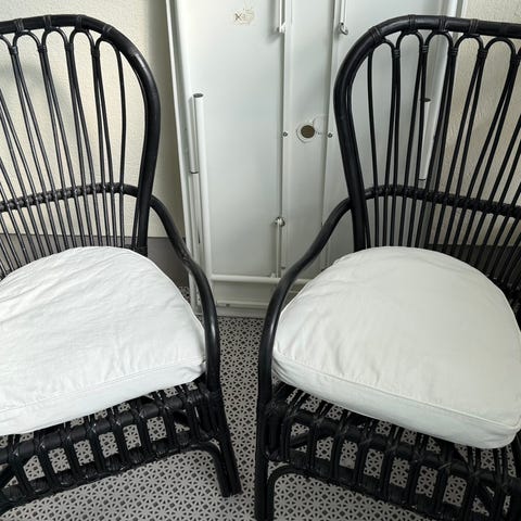 Sisäkäytössä ollut polyrottinkituoli, sopii myös ulos.