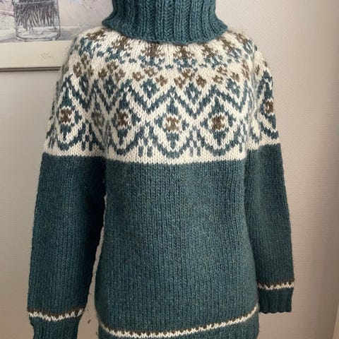 Islantilaisesta Lettlopi-langasta juuri valmistunut neule. Mitat: kai-kai 51 cm, kai-helma 43 cm, kai-hiha 50 cm, olka-helma n. 68 cm. Hinta 150 eur+pk 7,90 eur.