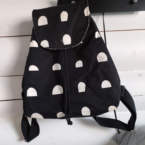 Marimekko reppu unisex-käyttöön. Materiaalina Repussa on vaalea pääväri ja tummat yksityiskohdat. Useita vetoketjutaskuja edessä ja sivuilla sekä säädettävät, pehmustetut olkahihnat. Sisäpuolella on lokeroita ja verkkotasku pientavaroiden järjestelyyn.