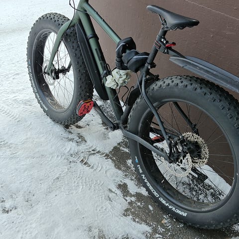 Myynnissä vähälle käytölle jäänyt fatbike. Ketjut vaihdettu juuri uusiin laadukkaisiin Shimanon ketjuihin. Eturenkaassa on nastat, joten tällä pysyy pystyssä jäälläkin. Ostettu pari vuotta sitten. Kuitti löytyy mukaan.