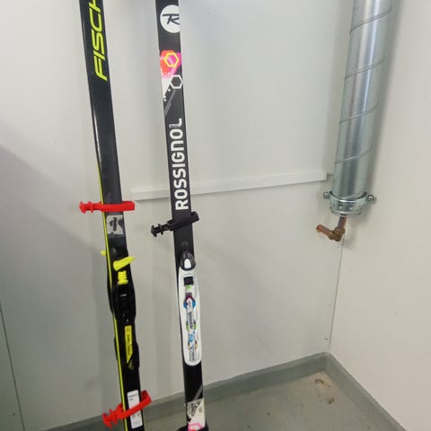 Peltonen RSC BC -maastohiihtosukset NNN-siteillä. Suksissa on punaiset NNN-siteet, jotka sopivat yhteensopiviin maastohiihtokenkiin.
