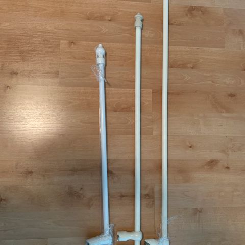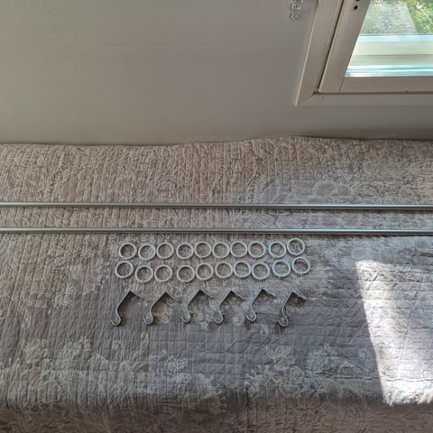 Ikean alumiinin väriset verhotangot, pituus max 6 metriä. Pituus säädettävissä. Sisältää myös seinäkiinnikkeet