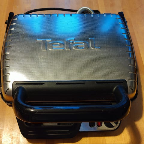 Tefal Inox & Design raclette-grilli. Pöytämallinen sähkökäyttöinen raclette-grilli, jossa yläosassa grillitaso ja alaosassa paistopannut juustolle. Runko on mustaa muovia ja ruostumatonta terästä. Mukana useita pieniä raclette-pannuja. Soveltuu ruoan valmistukseen ja lämmittämiseen useammalle ruokailijalle yhtä aikaa.