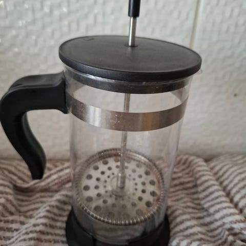 Tämä on ilmeisesti oikeasti teekeitin. On keitelty kahvia tällä pari vuotta. Suodatin osa ei alkuperäinen. En toimertunut etsimään oikeaa kokoa. Ei ole nykyisellä kaatunut suodatin, vaikka ei ole ihan kohdallaan. Annetaan putsaamattonana.