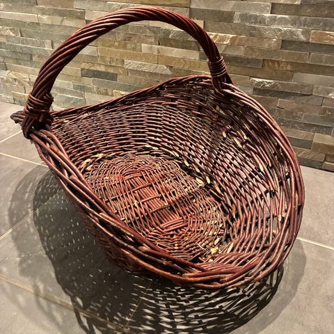 Myynnissä säilytyskori, rottinkia, koko noin 43 x 34 x 34. Takkapuille, leluille tms. Puukahvat. Nouto Espoosta.