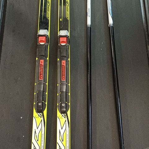 Myydään lasten Fischer karvapohja sukset(123cm) ja One way sauvat(100cm).