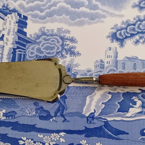 Leivoslapio kakkulapio vanha vintage keittiö kattaus messinki messinkinen