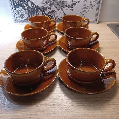 Nämä 2 kpl kupit ja lautaset ovat hyvässä kunnossa ilman näkyviä vaurioita.
