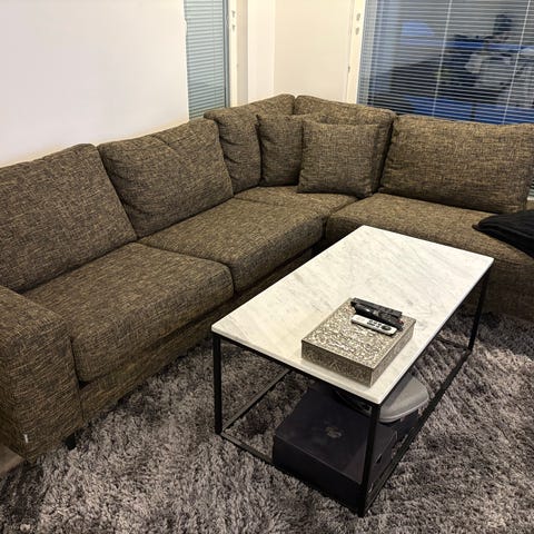 Myydään iso ja siisti kahden kulman sohva, johon mahtuu koko suku. Mitat 230x400x270 kaksi siirreltävää niskatukea, pikainen nouto