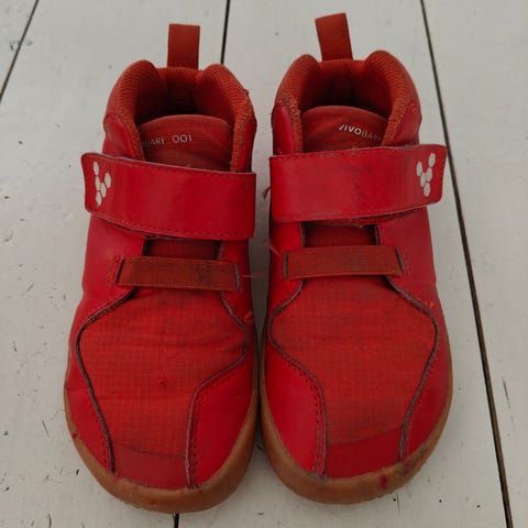 Vivon 29 koon hyväkuntoiset lenkkarit. 18,7cm sisämitta. Oikean kengän verkkoneulos mennyt puhki päältä, mutta itse kenkä on ehjä. Oikean jalan reuna myös varmuudeksi liimattu, ei ole ollut rikki.