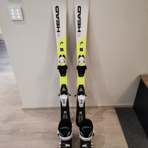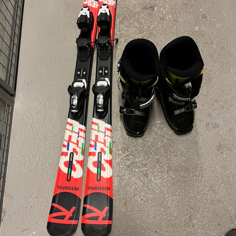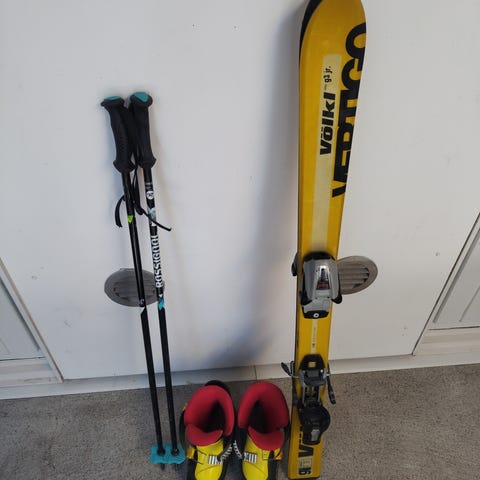 Lasten laskettelusetti, suksien pituus 116cm, monot 235 ja sauvat kaupan päälle.