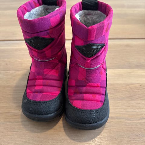 Kuoma lasten talvikengät, koko 22. Väri sininen mustilla vahvikkeilla. Unisex-malli, joka sopii sekä tytöille että pojille. Kengissä on paksu kumipohja, jossa karkea kuviointi paremman pidon takaamiseksi. Varressa on tekstiilinen päällinen ja sisällä pehmeä, harmaa vuori. Kantapäässä on lenkit helpottamassa pukemista. Soveltuvat kylmään säähän ja ulkoiluun.