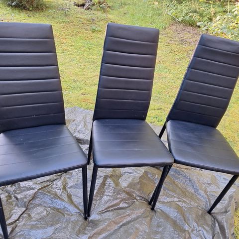 Myydään 8kpl keinonahkatuoleja. Nahkaosissa vikoja, näistä kuvia. 10e/8kpl.