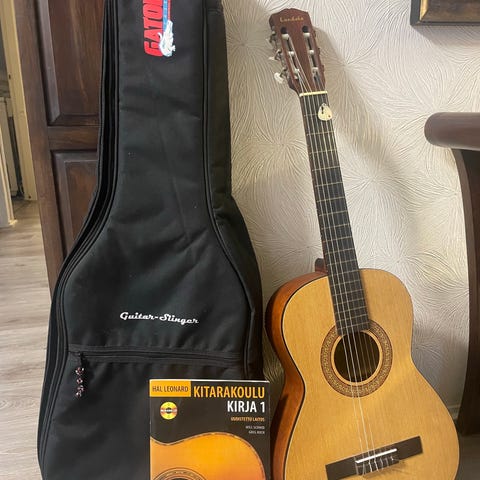 Axesmith MD-101 akustinen kitara. Teräskielinen dreadnought-mallinen akustinen kitara, jossa vaalea etukansi ja tummempi punertava pohja ja sivut. Soittimessa on musta plektrasuoja ja perinteinen pyöreä ääniaukko koristelistalla. Sopii yleiskäyttöön esimerkiksi komppaukseen ja säestämiseen. Kitarassa on hihnatapit kitarahihnaa varten.