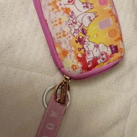 Moomin kangaskassi. Turkoosinsävyinen kangaslaukku, jossa Muumi-hahmo ja kukkakuviointi etupuolella. Laukussa on kantohihnat olalla kantamista varten. Sisäpuolella on vetoketjullinen tasku pienille tavaroille. Soveltuu arkilaukuksi, ostoskassiksi tai muuhun yleiskäyttöön.