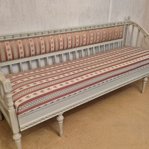 Sohva, pöytä ja kaksi käsinojallista tuolia