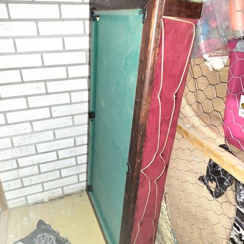 Biljardipöytä, koko 99x183 cm, korkeus 78 cm. Toisesta kepistä on irronnut kärki. Pöydän saa purettua osiin.