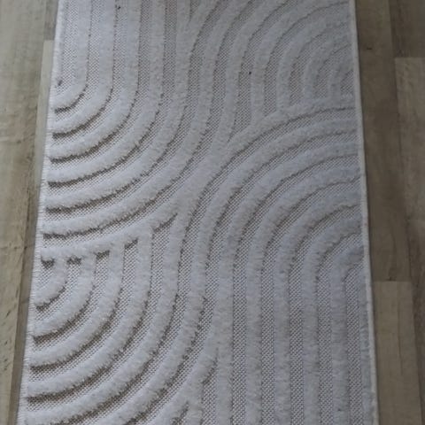Sotkan siisti tummahko matto vaalein kuvioin, koko 200x58cm. Kuvassa hieman reunat kääntyneet säilytyksestä johtuen, mutta matto suoristuu ajan myötä kun pääsee suoristumaan lattialle.