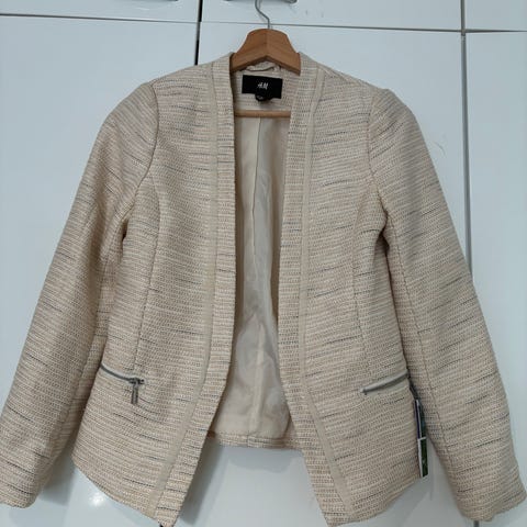 Takissa on kaksi suurta läppätaskua rinnassa. Väri on beige ja materiaali on polyesteri, pinnaltaan pehmeä ja nukkapintainen. Hihansuissa on napilliset mansetit. Sopii käytettäväksi kevyenä takkina tai lämpimänä päällysvaatteena viileämpiin päiviin.