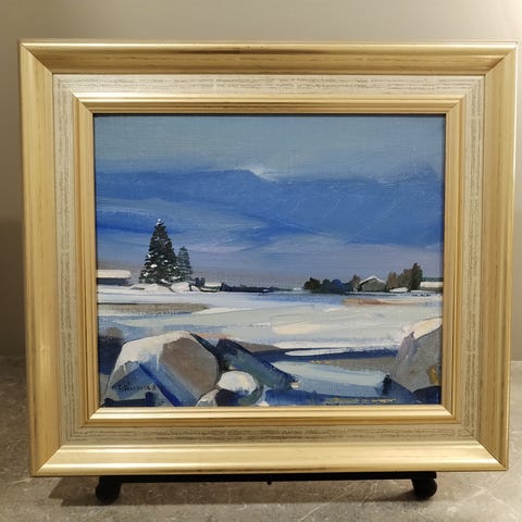 Maalaus, jossa esitetään merimaisema kalliorannalla. Etualalla on suuria kiviä ja kallioita, keskellä aaltoileva meri ja taustalla pilvinen taivas. Oikeassa reunassa näkyy puustoa syksyisissä väreissä. Teos on suorakaiteen muotoinen ja vaakasuuntainen. Alareunassa kaiverrettu signeeraus ja vuosiluku 79.