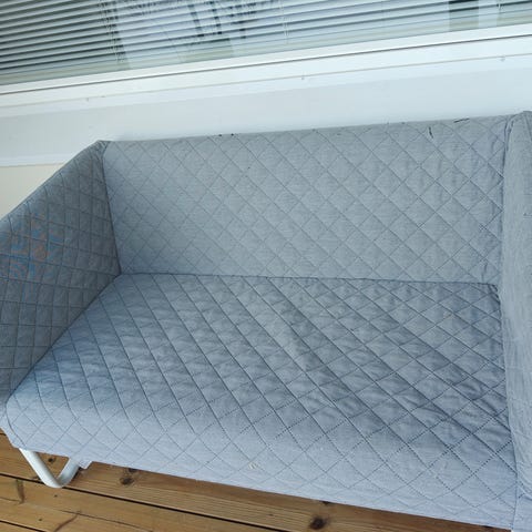Ektorp 2:n istuttava sohva, beiget päälliset (uusia saa Ikeassa). Vasen käsinoja on löystynyt, mutta kiinni, sen vuoksi annetaan pois. Ei toimitusta.