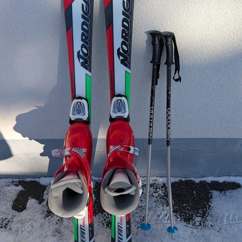 Pari talvea käytössä yhdellä laskijalle ollut uutena hankittu laskettelusetti. Sukset 120cm, sauvat 95cm, Monot sisämitta 235cmn, mononkoko 275cm. Kaupan päälle saa vielä valkoisen lähes uudenveroisen laskettelukypärän sekä lasten laskettelulasit.