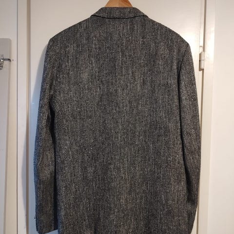 Turo merkkinen sininen pikkutakki joka on villan ja polyesterin sekoitusta.