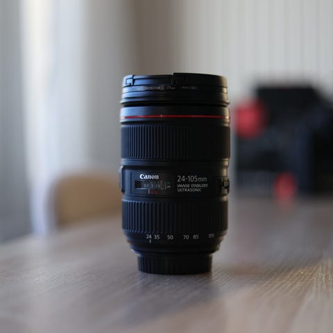 Canon EF 24-105mm f/4L IS II USM zoom-objektiivi. Polttovälialue 24–105 mm ja kiinteä suurin aukko f/4. Objektiivissa on kuvanvakain (Image Stabilizer), ultrasoninen tarkennusmoottori (USM) sekä AF/MF-kytkin ja kuvanvakaimen on/off-kytkin. EF-kiinnitys Canonin täyden kennon ja APS-C -järjestelmäkameroihin. Väriltään musta, L-sarjan rakenne punaisella renkaalla. Sopii yleiskäyttöön, kuten maisema-, muoto- ja matkakuvaukseen.