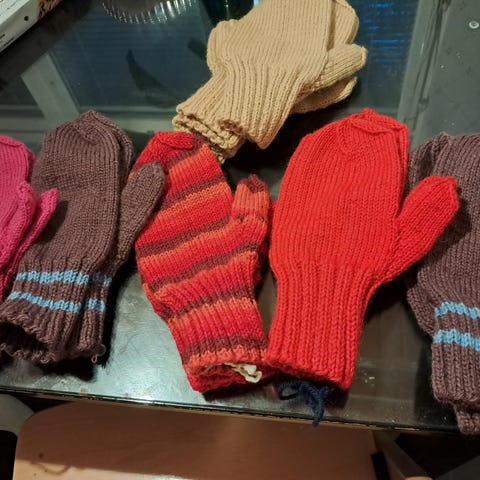 Käsin tehdyt tyttöjen kirjoneulelapaset.
