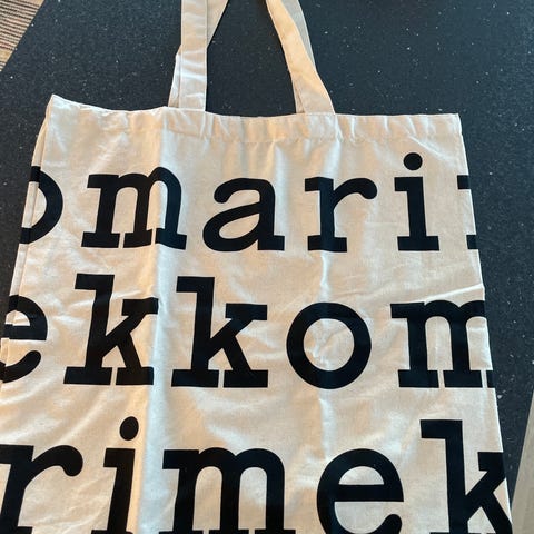 Marimekko kangaskassi unisex-käyttöön. Kassi on valmistettu 100 % orgaanisesta puuvillakankaasta. Vaalea pohjaväri ja suuret Marimekko-logotekstit. Pitkät kantokahvat mahdollistavat kantamisen olalla tai kädessä.
