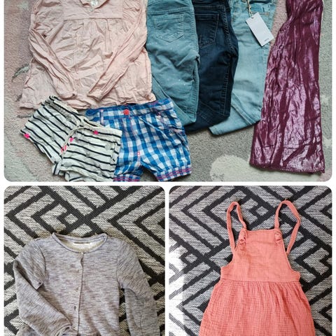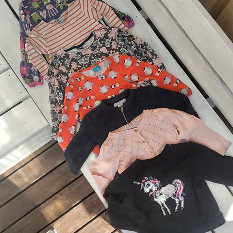 Siistikuntoinen tyttöjen vaatesetti koko 110/116. Setissä Lindex vohvelikankainen mekko, House yksisarvisyöasu, Name it housut, Gugguu tunika (nimikointi sotkettu) ja Newbien ohut paitul7. Koot 110/116. En löydä juuri moitteita, yöasussa hieman enemmän haitua. Eläimetön ja hajuton koti. Yhteensä 6 euroa.