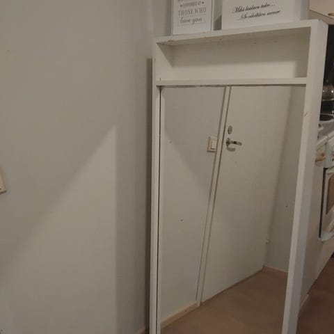 Jyskin isolle peilille teetetty teline/jalusta. Ilman seinään kiinnitystä! Korkeus säädettävissä ruuveilla.