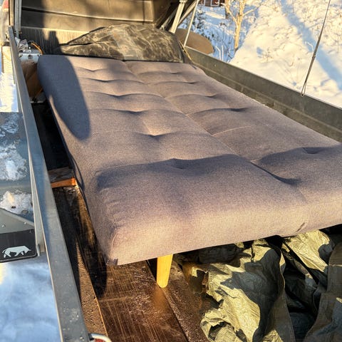 Myydään kuvan vuodesohva. Tiedot: https://www.ikea.com/fi/fi/p/hammarn-vuodesohva-knisa-tummanharmaa-musta-90354327/