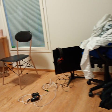 putki ja kirkkaus ok. Muovissa mustaa ja tarroja, lähtee varmaan puhtaaksi kun putsaa. Takana halkeama.