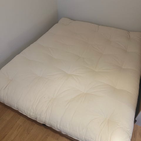 Myydään 2020 uutena hankittu puuvillafutonpatja koossa 180x200. Käytetty aina petauspatjan kanssa ja rullailtu säännöllisesti. Savuton talous, ei lemmikkieläimiä. Siistissä kunnossa.