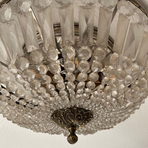 Kaunis viisihaarainen kattovalaisin 70-luvulta. Valmistajana Emi Poljčane. Oikein hyvässä kunnossa!
