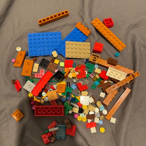 Ostin lapselle bonuslahjaksi tämän paketin kympillä täältä Torista, mutta ei ollutkaan enää mieluinen. Ei siis olla koottu tätä itse ja palat ovat edellisen myyjän jäljiltä. Luulisi, että kaikki on ok. Vihko on jo vähän kulunut, mutta ehjä kyllä.