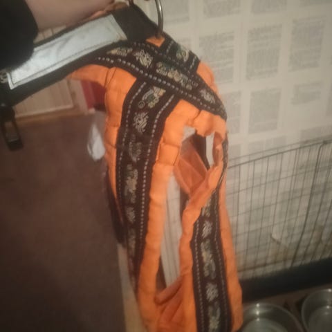 Myydään valjaat isommalle koiralle. Vanhat, mutta vain pari kertaa käytetty. Olleet aikoinaan venäjänvinttikoiralla. Alahihna aika hyvin säädettävissä. Veikkaisin, että menevät monen kokoisille koirille, muttei kaikkein pienimmille. Sovitus käy hyvin päinsä kaupanteon yhteydessä.