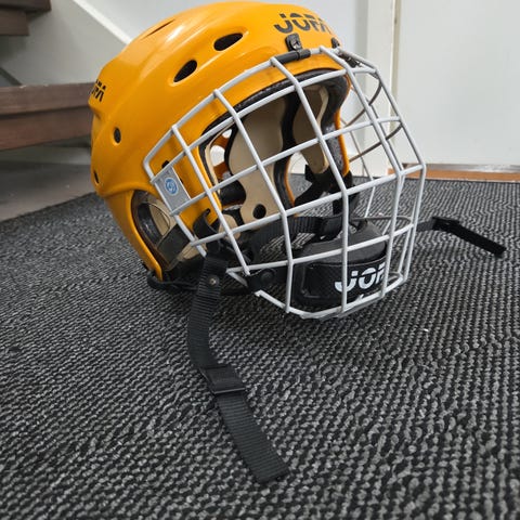 Vähälle käytölle jäänyt Jofa 690 -jääkiekkokypärä. Ei murtumia tai kolhuja. Koko 53 - 58 cm.