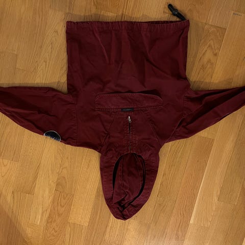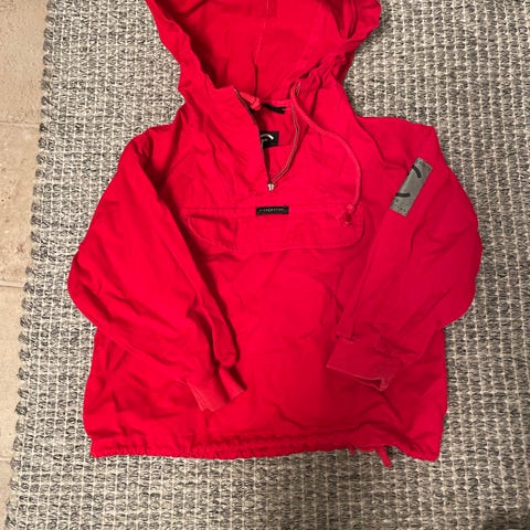Siisti puuvillainen takki, jossa vettähylkivä käsittely. Meillä ollut käytössä lapsella 2-3 v. ikäisenä. Väri rusehtavan vihreä. Edessä vetoketjutaskut.