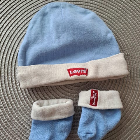 Myydään uusi, paketissaan oleva Levi's vaatepaketti, johon kuuluvat body, pipo ja tossut. Koko 6-12kk. On avaamattomassa paketissaan eli tuotteet täysin uusia. Paketissa vähän kulumaa (näkyy kuvissa)