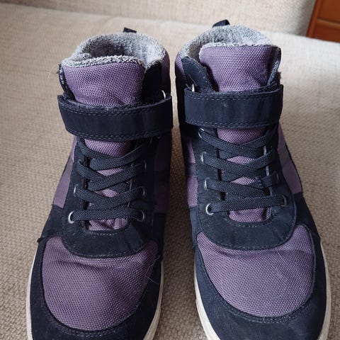 Viking lasten kengät, unisex-malli, koko 38. Tummansiniset nilkkapituiset kengät, joissa vaaleat pohjat ja kontrastina ruskeita yksityiskohtia. Päällinen on tekstiili- ja synteettimateriaalia, sisäpuolella pehmeä karvavuori. Nauhat ja tarrakiinnitys varmistavat istuvuuden. Soveltuvat arki- ja ulkokäyttöön lapsille ja nuorille. Pohjalliset puuttuvat. Vaikea mitata sisämittaa.