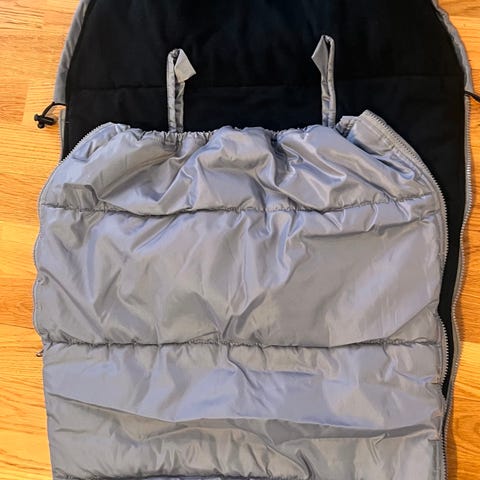 Vaunupussukka ohuella fleecevuorella. 5 pistevyölle paikat takana. Aukeaa ihan auki saakka. Nyt ollut jonkun aikaa varastossa mut ehjä