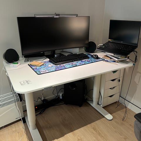 Myydään muuton yhteydessä pois Ikeasta ostettu hyvässä kunnossa oleva sähköpöytä. Työskentykorkeus säädettävissä välillä 65-126 cm. Pöytälevyssä pieniä kulumia ja sen saa irrotettua kätevästi kuusiokoloavaimella. Vain nouto ja voin auttaa kantamaan alas.