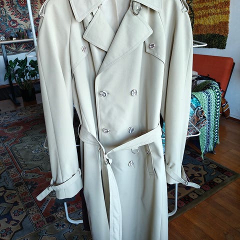 Tummansininen miesten rahlahihainen posliini/trenssitakki koko 48
