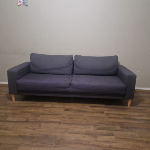 Myydään 3-istuttava sohva puuosilla.